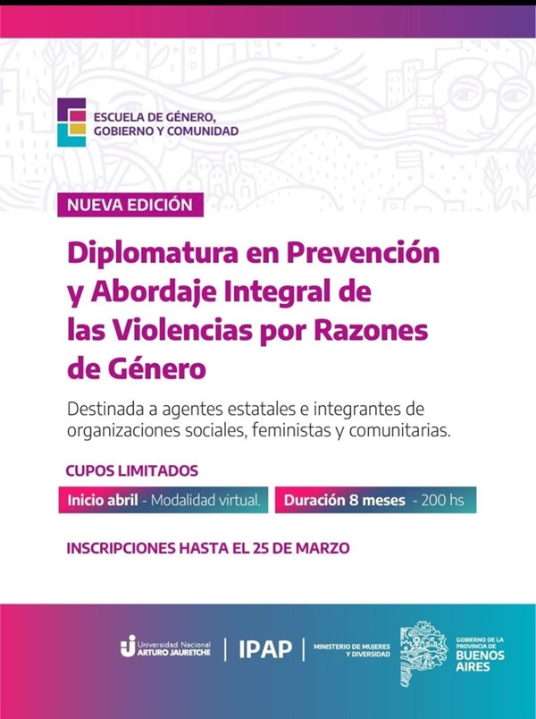 El Ministerio de Mujeres y Diversidades, a través de la Casa de la Provincia de Buenos Aires sede Zárate, continúa promoviendo instancias de formación y capacitación abiertas a la comunidad. En este marco, se encuentra abierta la inscripción para la Diplomatura en Prevención y Abordaje Integral de las Violencias por Razones de Género.
