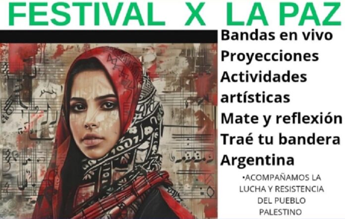 Este sábado a las 17hs se llevará a cabo en la intersección de Lavalle y Pedro Martini, enfrente del monumento a los soldados de Malvinas, un festival por la paz en Palestina. El evento es organizado por artistas autoconvocados de Zarate.