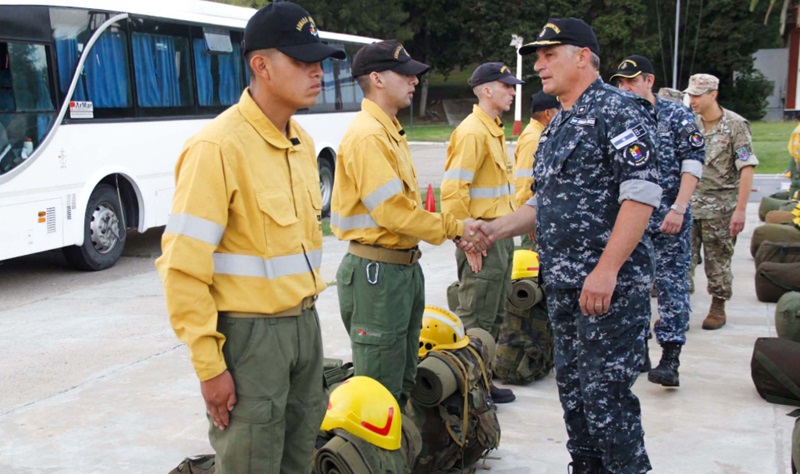 En este marco, en la Plaza de Armas “Fragata Presidente Sarmiento”, el Comandante del Área Naval Fluvial y Jefe de la Base Naval Zárate, Comodoro de Marina Damián Gabriel Orgiazzi, despidió a 27 brigadistas capacitados por el Servicio Nacional de Manejo del Fuego, dependiente de la Agencia Federal de Emergencias (AFE).