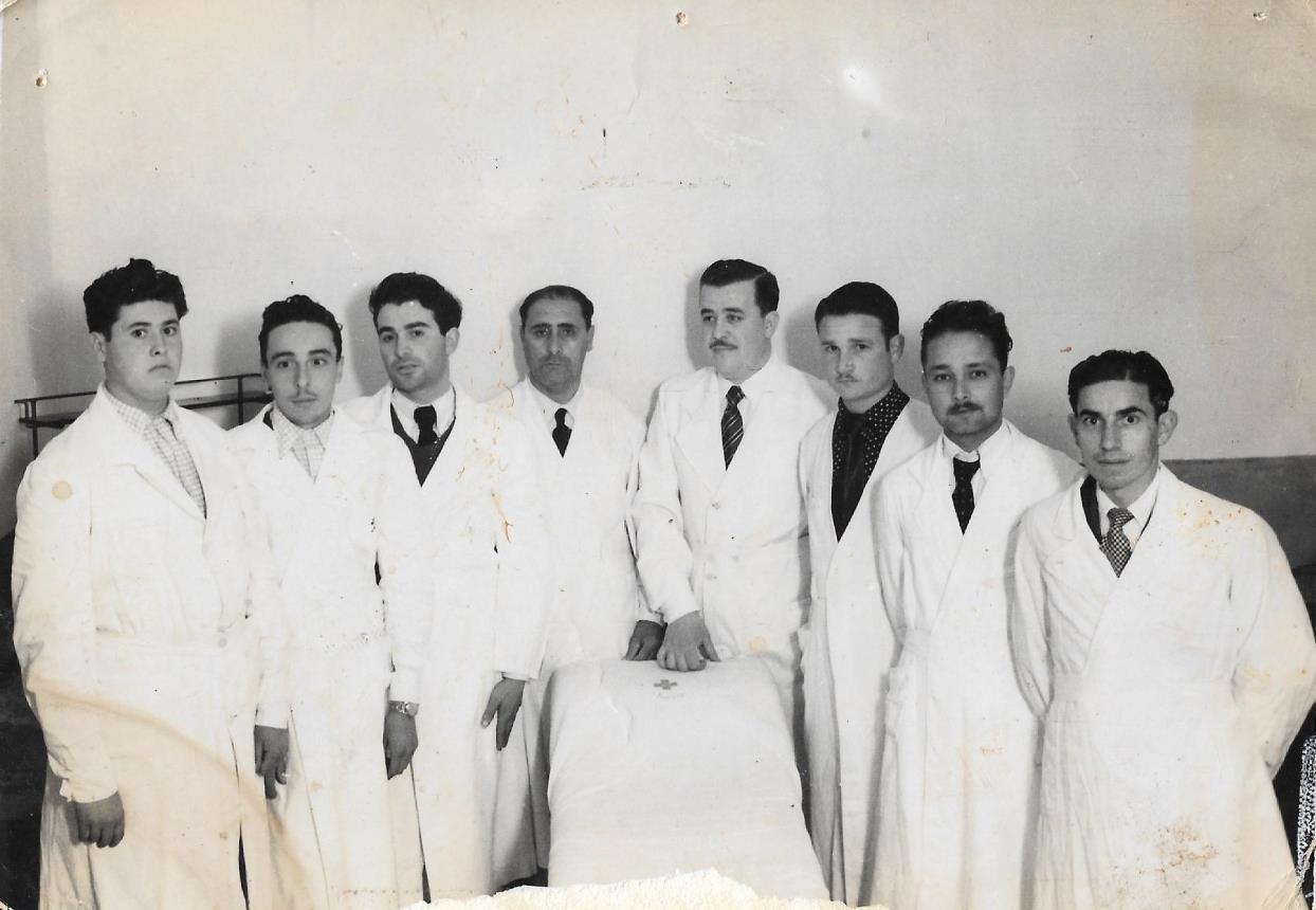 Simón Pitrau y Santiago M. Vidal. Ayudante de farmacia, Juan Antonio Moncechi; Ayudante de laboratorio, Homero Capdepon; Ayudante radiólogo, Marcelino Insúa; Cabo de cirujía, Cristóbal Rueda; Cabos enfermeros, Juan Escudero, Lucía S. de Brezioso y Brígida Paredes. Enfermero consultorio externo, Manuel Megid; Enfermera cirujía, Sta. Irma Brivio; Enfermeros, Hilario Gómez, José Amigo, Josefa Beuza, Petrona Dutra de Escudero, Nicolina Casado de Goñi y Nélida Saavedra. Costurera, Amelia Zanuzzi; Lavanderas, Ramona Charrutti y Ángela Sosa de Castro; Planchadoras: Justina Zapata y Manuela de Santillán; Cocinero, Ángel Leccessi; Mecánico electricista, Eufemio Farías; Jardinero, José A. Otálora; Portero, Enrique Sanders; Sereno, Juan José Correa Bustos; Mucamo, Dionisio Arévalo; Peones de jardín, Alfredo Santos Fernández y Avelino González; Peones limpieza, Avelino Pérez, Apolinario Barrera, Inocencio Cabrera, Marcelino Bulfo y Ángel Costa; Peones cocina, Máximo Fernández e Ireneo Arévalo.