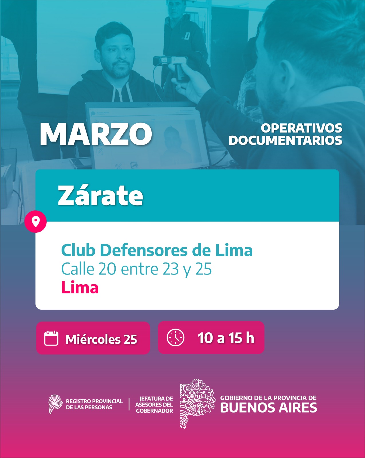 El Registro Provincial de las Personas organiza operativos de tramitación de DNI en distintos barrios de Zárate y Lima