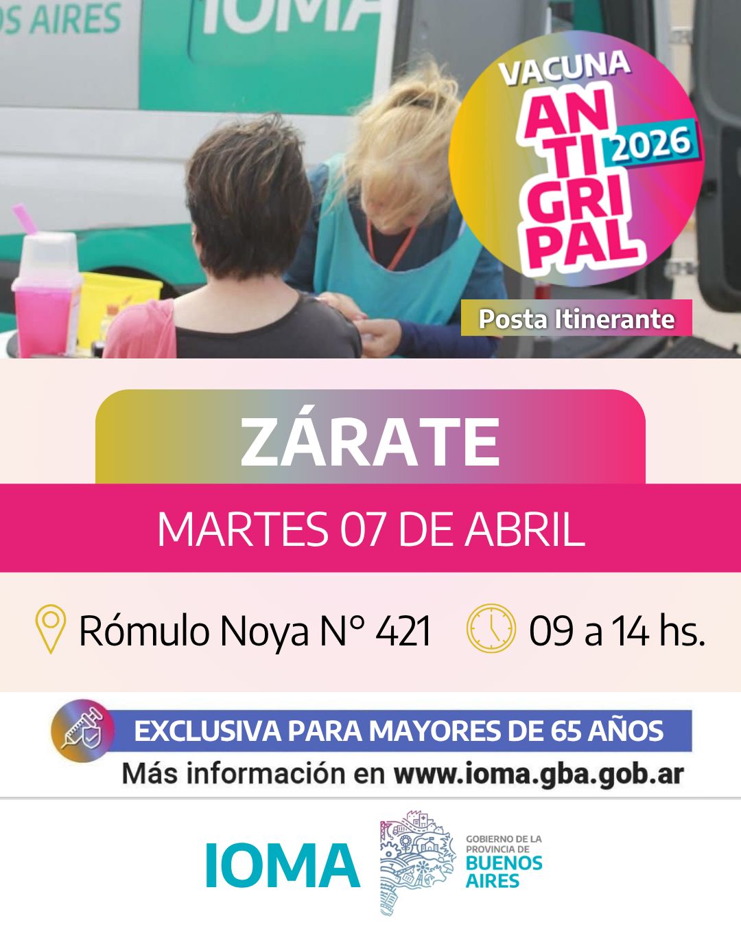 IOMA llevará adelante una vez más sus tradicionales postas de vacunación en las localidades de Zárate y Lima, en el marco de la campaña de vacunación antigripal impulsada en la provincia de Buenos Aires.