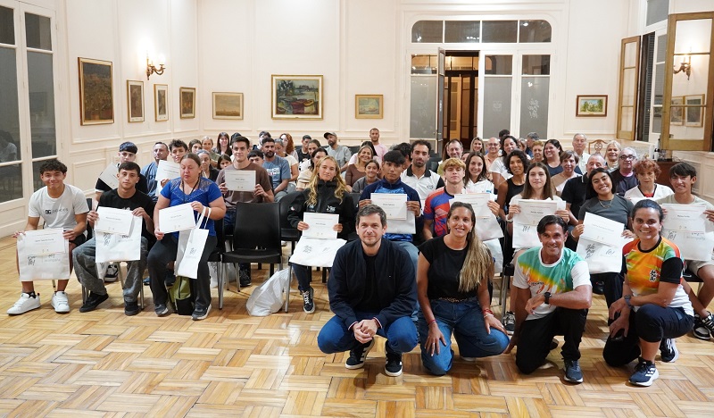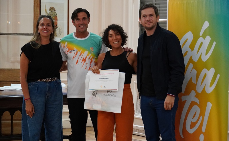 Acompañaron al intendente durante la entrega, la secretaria de Educación y Deporte, Stefanía Rodríguez Schatz y el subsecretario de Deporte, Diego Marquine.