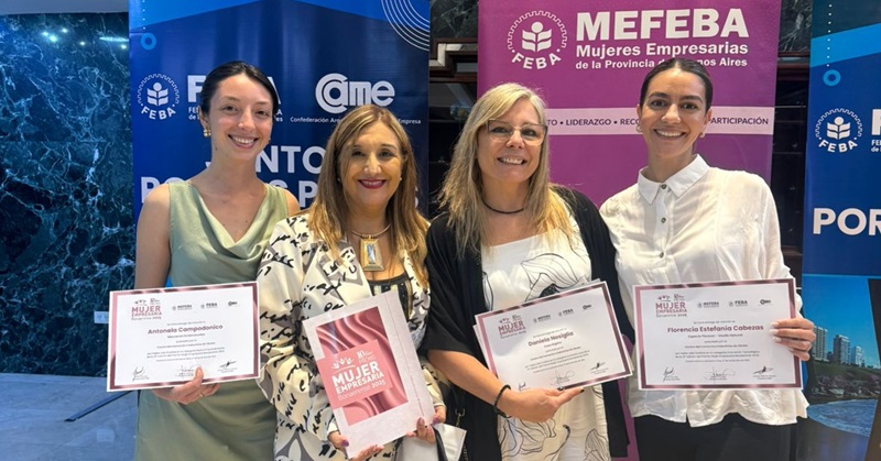 Nuevo Emprendimiento- Jimena Martin Baires Group San Martin, Innovación Tecnológica Cyntia Ostrofsky-Tecnon SRL Berisso, Responsabilidad Social Empresaria – Graciela Cardenas Escuela Especial Fundar Caminos Lomas de Zamora, Liderazgo Empresarial Andrea y Fabiana Panella Transporte PANELLA Mercedes, Comercio local Sandra Bortolot El Paive Quilmes y la gran ganadora del Premio MEFEBA: Sandra Bortolot El Paive Quilmes.