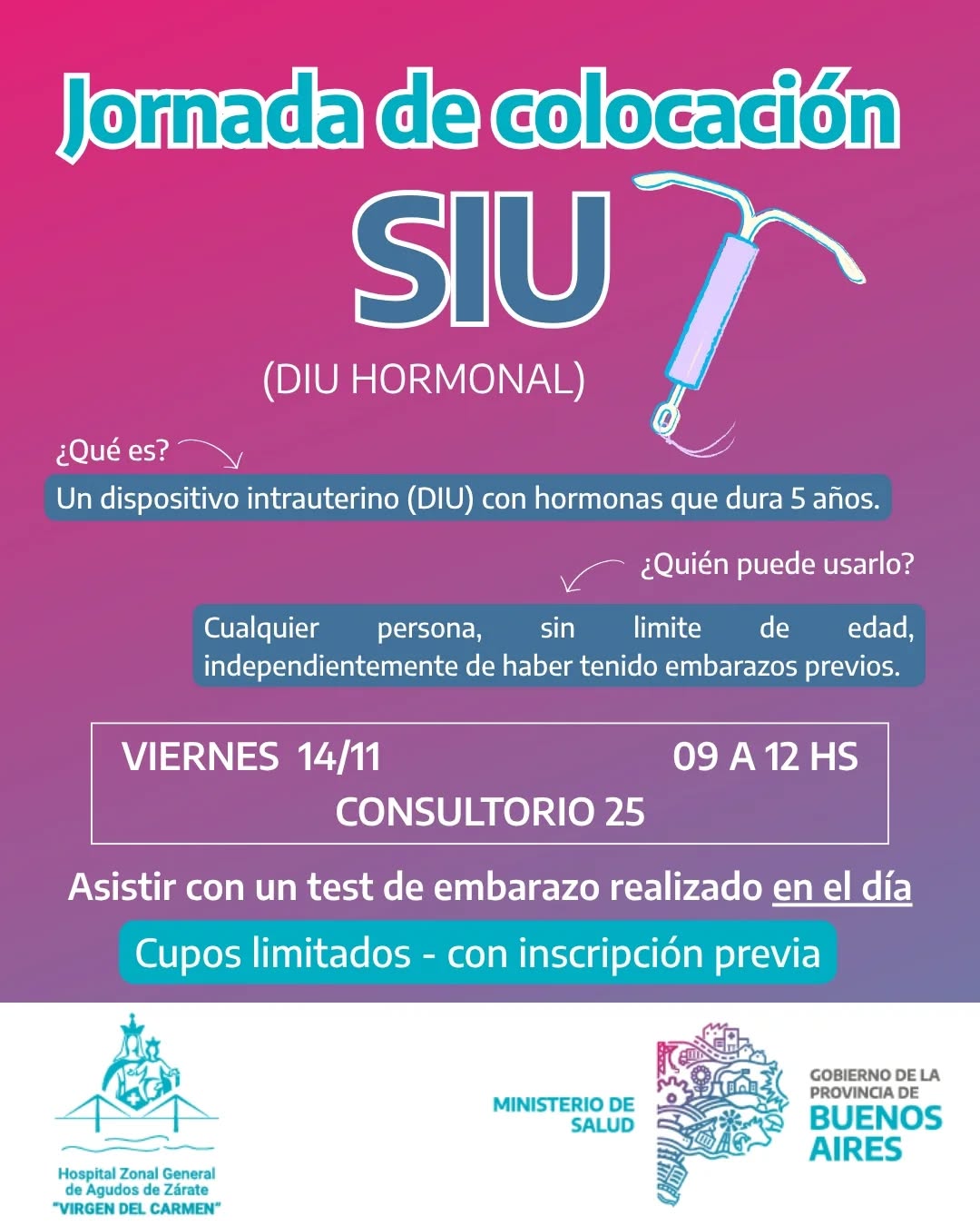 El SIU es un anticonceptivo hormonal que se coloca dentro del útero y libera una pequeña cantidad de hormonas: “Recordá que el único método para prevenir ITS es el preservativo” concluye la convocatoria.