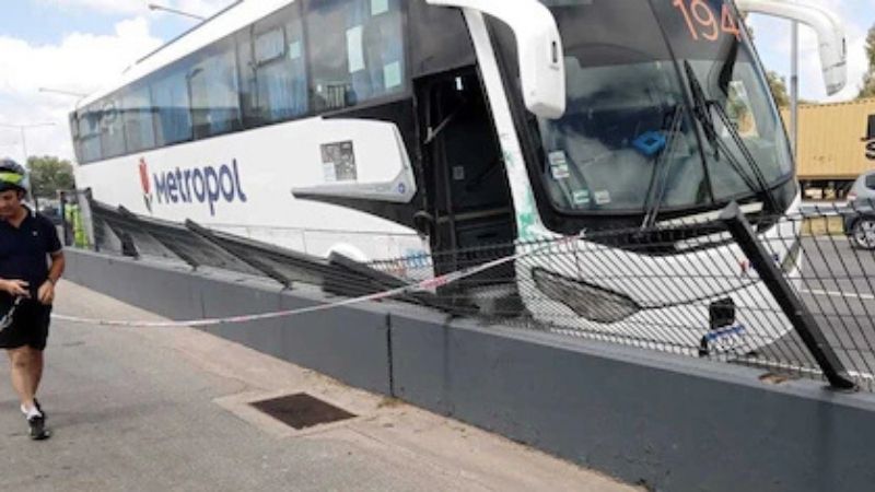 El siniestro se produjo cuando un camión con carga pesasa realizó una maniobra evasiva para evitar a dos motociclistas caídos sobre la calzada, impactando al colectivo y llevándolo contra un muro de contención.