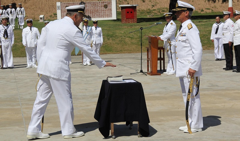 Luego de la lectura de la designación del nuevo Comandante, el Contraalmirante Lioi Pombo tomó juramento y puso en funciones al Capitán Orgiazzi, quien requirió al personal militar formado, la fórmula de Subordinación y Valor.